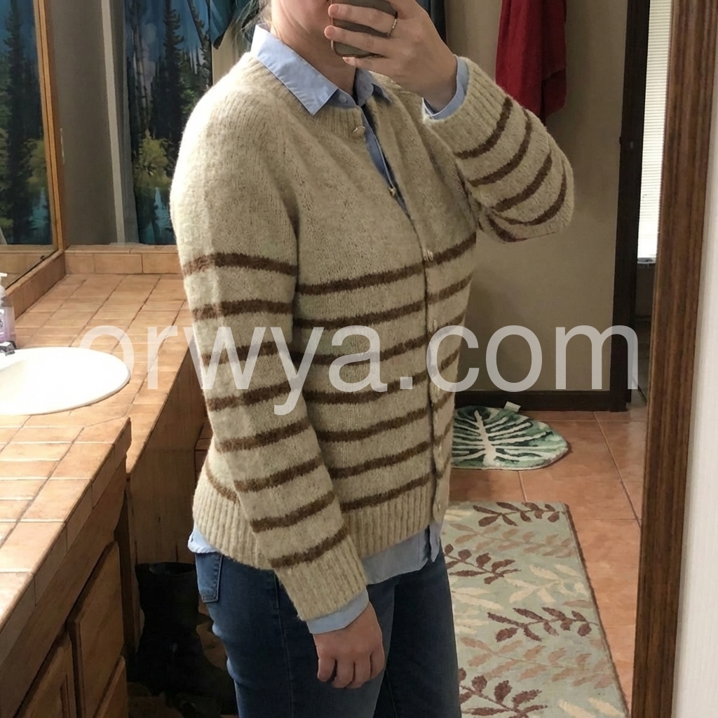 This Apricot Long Sleeve Striped Cardigan is a versatile addition to any wardrobe. Perfect for cooler days, it features a timeless striped design and long sleeves for added warmth. Made from high-quality materials, it's both comfortable and stylish, making it the perfect option for everyday wear. With its classic design and practical features, this cardigan is a must-have for any fashion-forward individual.