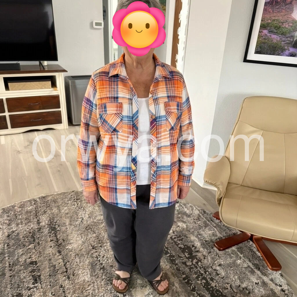 Blue Orange Plaid Button Front Blouse Top