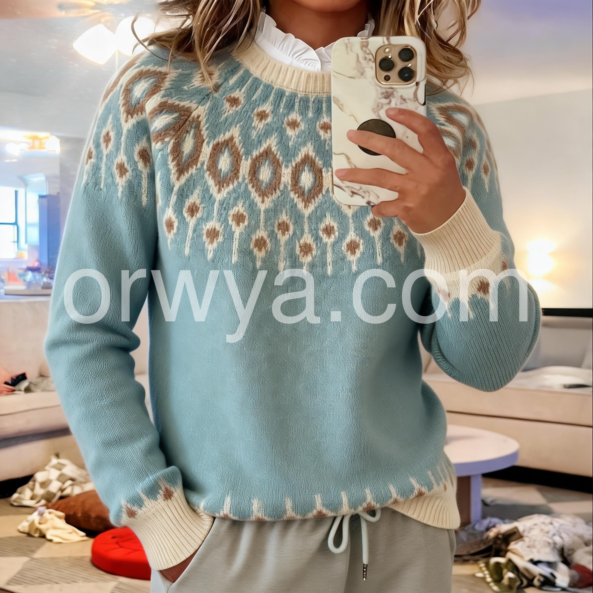 This Temperament Light Blue Round Neck Sweater is a must-have for any fashion-forward individual. Made from high-quality materials, it offers both style and comfort. The round neck design is perfect for any occasion and its light blue color adds a touch of elegance to any outfit. Stay stylish and comfortable with this must-have sweater.