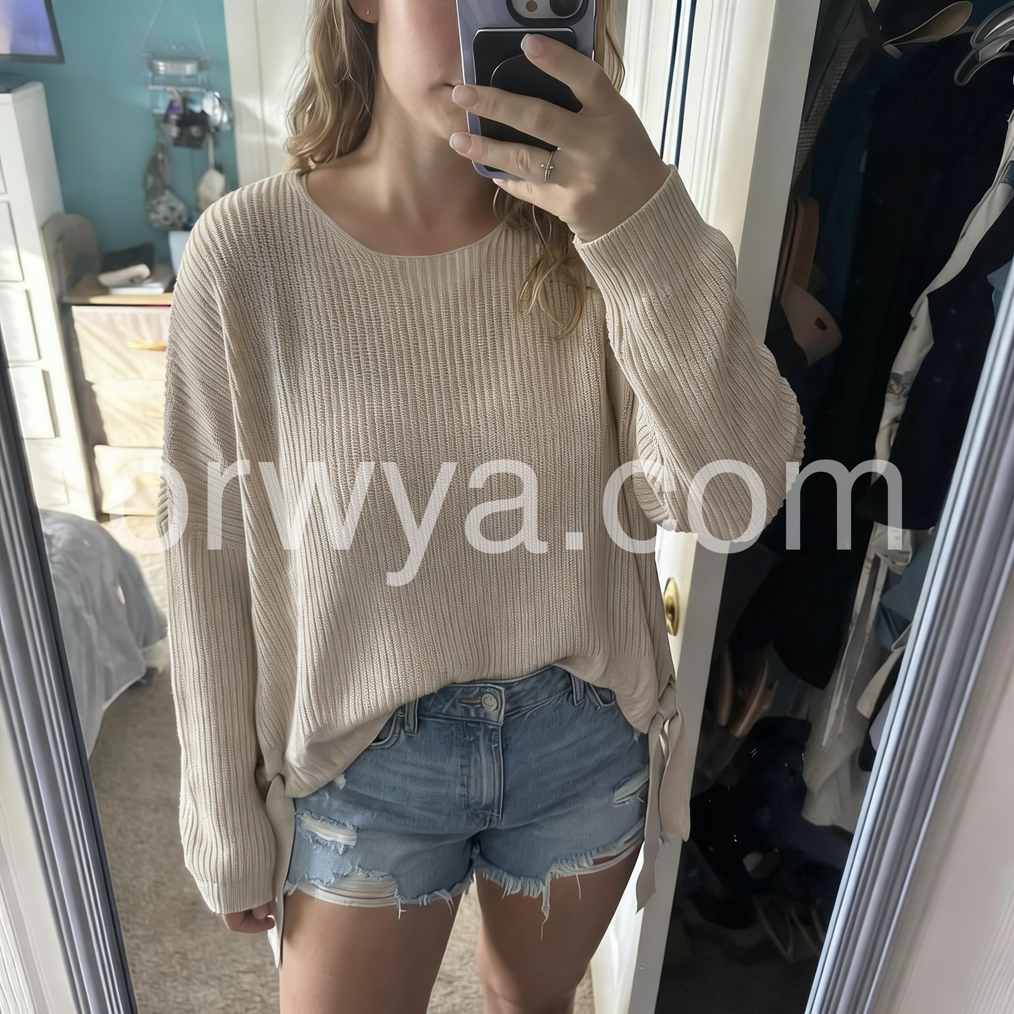 Stay warm and look stylish with this apricot plain round neck sweater. Knitted from high-quality material, it's lightweight, breathable, and soft to the touch. Its plain, classic look makes it a perfect addition to any wardrobe.