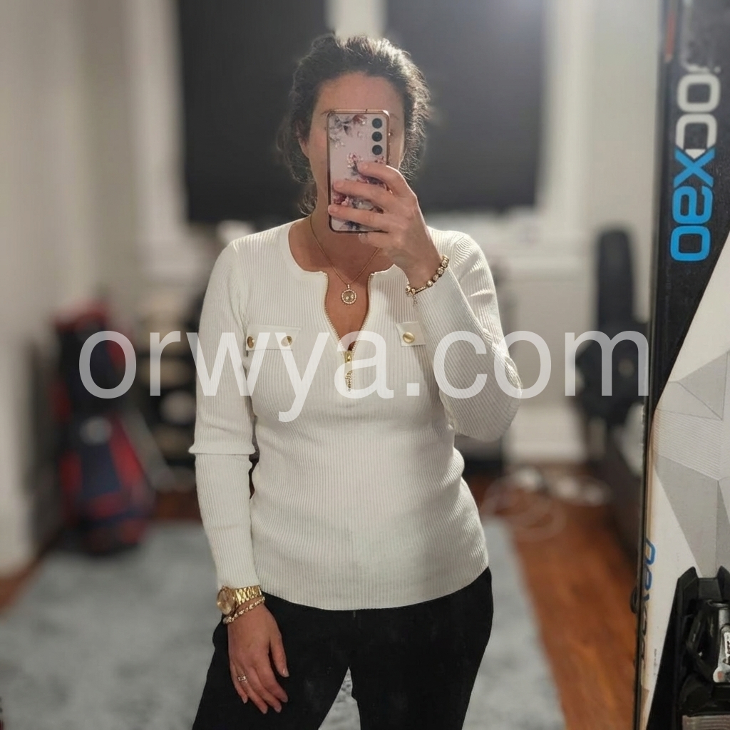 Elevate your wardrobe with our Chic Zip V-Neck White Plain Knit Top. The stylish v-neck neckline and subtle zip feature add a touch of sophistication to any outfit. Made from high-quality, soft knit material, this top is both comfortable and versatile. Perfect for any occasion, elevate your style with this must-have piece.