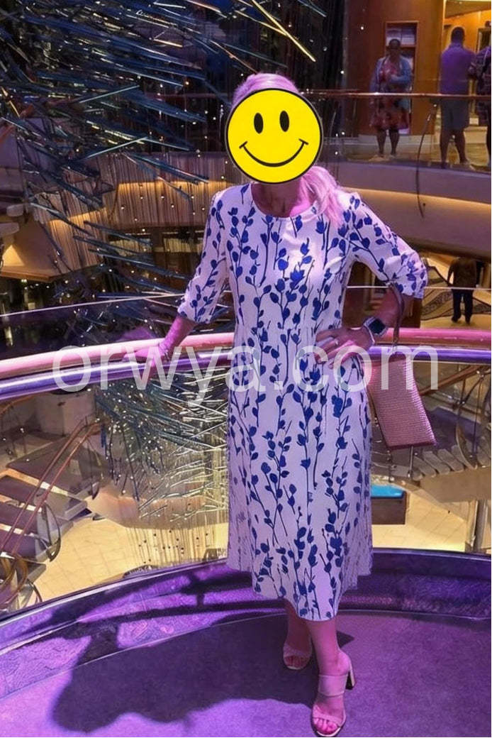 Embrace the serenity of seaside living in this Coastal Blue Botanical Print Midi Dress, a dreamy and elegant piece that captures the essence of Mediterranean charm. Crafted from lightweight, breathable fabric—likely cotton or linen blend—this midi dress features a crisp white base adorned with a delicate all-over print of navy blue leafy vines and botanical sprigs, evoking the beauty of coastal flora. The relaxed A-line silhouette flatters every figure, while the high waist and gentle gathering create a soft, flowing shape that moves gracefully with you. Short sleeves and a round neckline offer timeless comfort and ease, perfect for warm days by the sea. Designed with functional side pockets, it’s both stylish and practical—ideal for strolls through whitewashed villages, beachside brunches, or summer vacations.