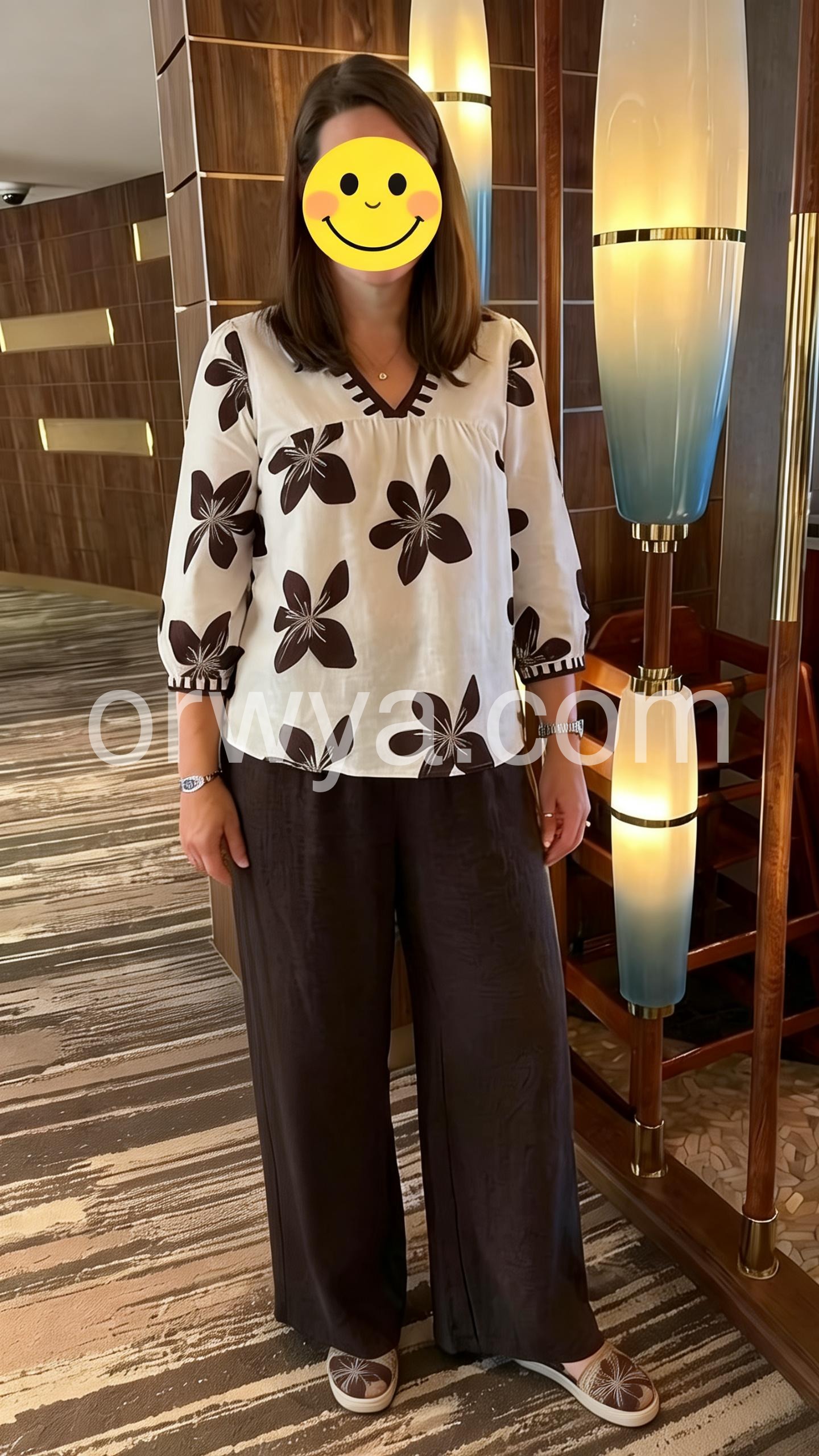 This coordinated set features a relaxed-fit top with bold black floral prints and a V-neckline. Paired with soft, wide-leg pants in dark gray for a balanced look. Lightweight fabric perfect for casual wear. Ideal for everyday comfort or summer outings. Effortlessly stylish and easy to style.