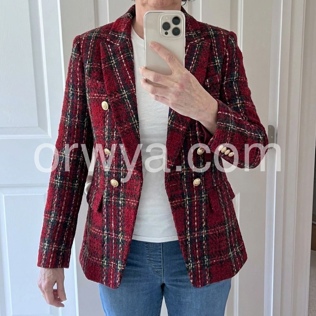 Upgrade your wardrobe with this Red Long Sleeve Check Blazer. This stylish blazer features a bold red color and a classic check print, perfect for making a statement. Crafted with long sleeves, it offers comfort and style all day long. Elevate your look with this versatile piece.