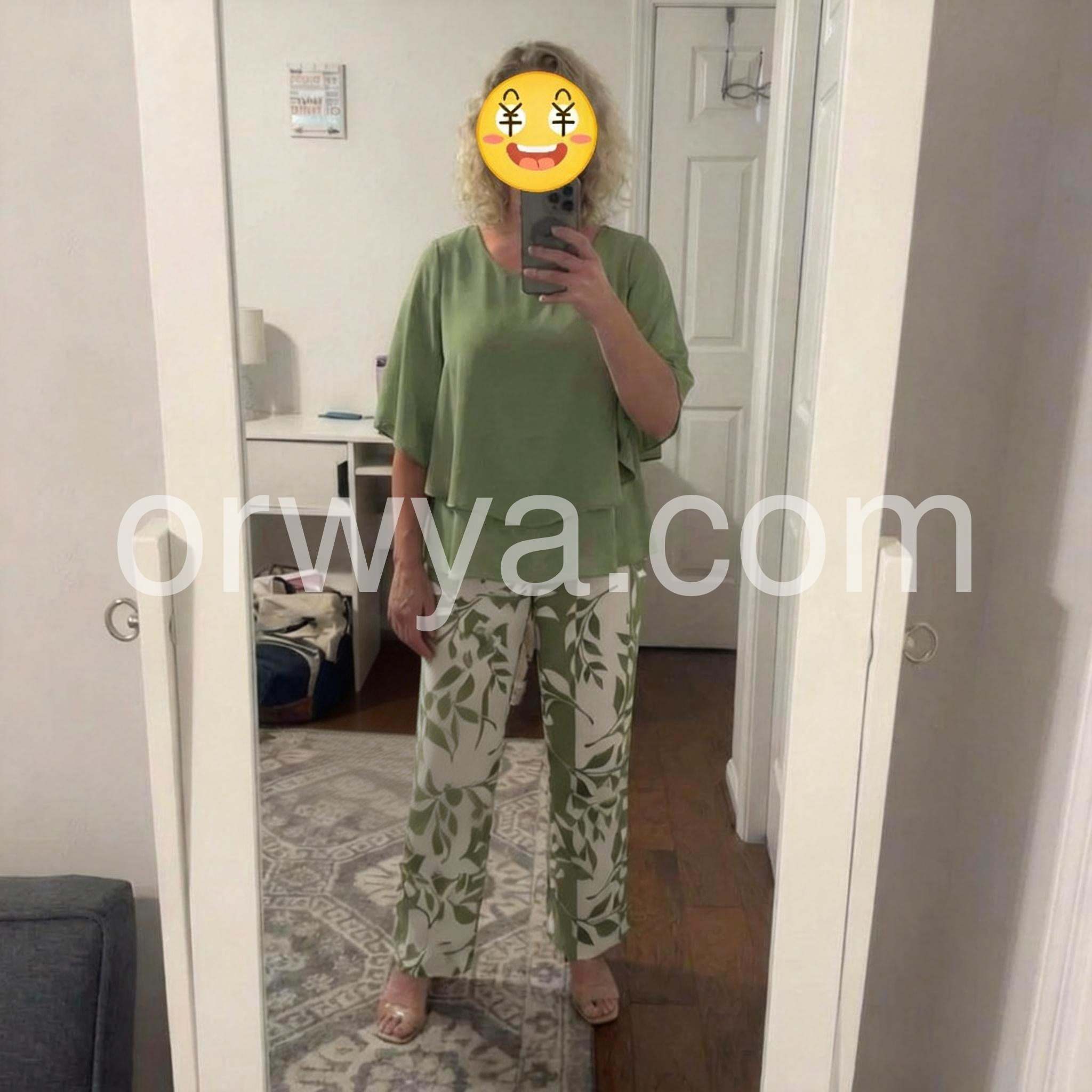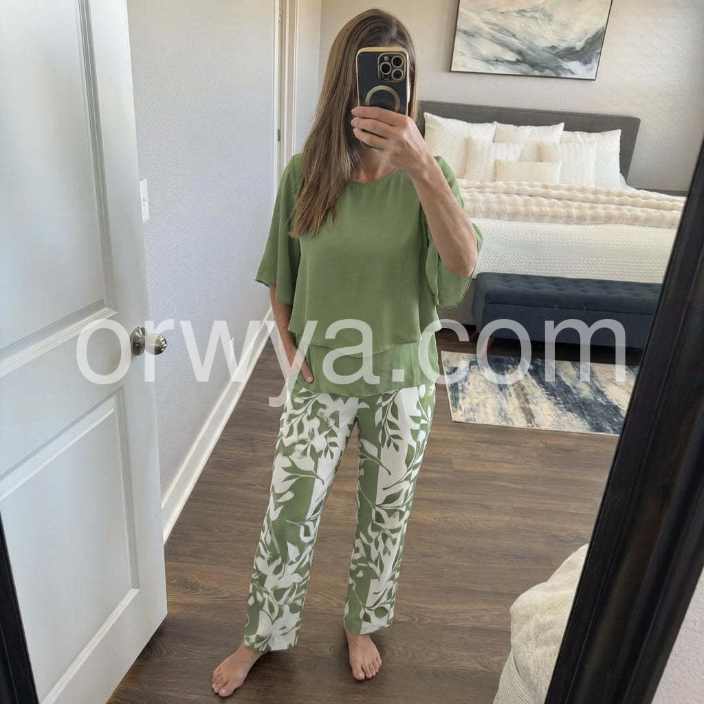Trendy Green Print 3/4 Sleeve Two Piece Set